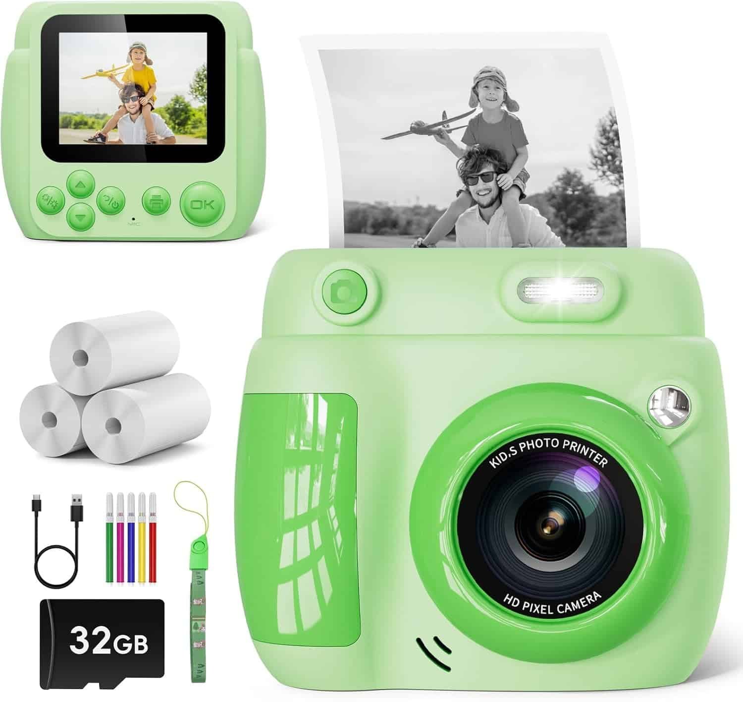– Christmas Birthday Gifts for Girls Boys Age 3-12, 1080P Video Digital Camera with 3 Rolls Printing Paper, Toddler Travel Toy Camera for 4 5 6 7 8 9 10 11 Year Old – Green